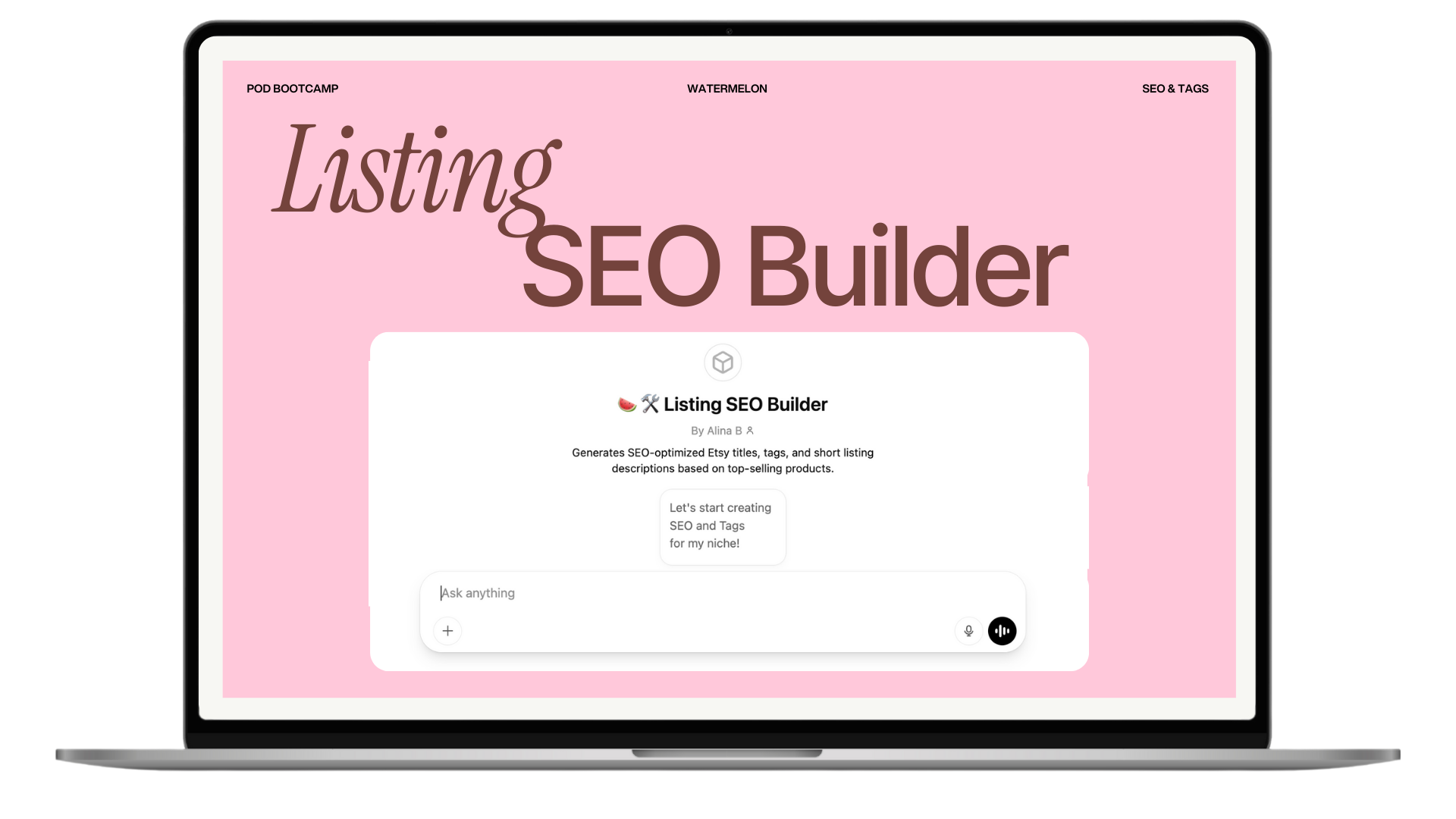 Skip the Etsy guesswork. Generate optimized titles, tags, and listings in seconds with this custom tool.